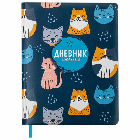 Дневник 1-11 класс 48 л., кожзам (твердая с поролоном), печать, наклейки, BRAUBERG, "Котики", 106946