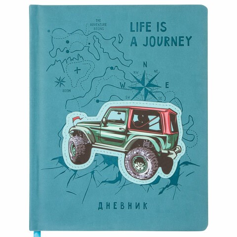 Дневник 1-11 класс 48 л., кожзам (твердая с поролоном), тиснение аппликация, BRAUBERG, "ДЖИП", 105977