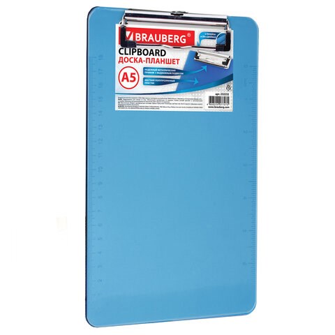 Доска-планшет МАЛОГО ФОРМАТА (155х228 мм), А5, BRAUBERG "Energy" с прижимом, пластик, 2 мм, СИНЯЯ, 232232