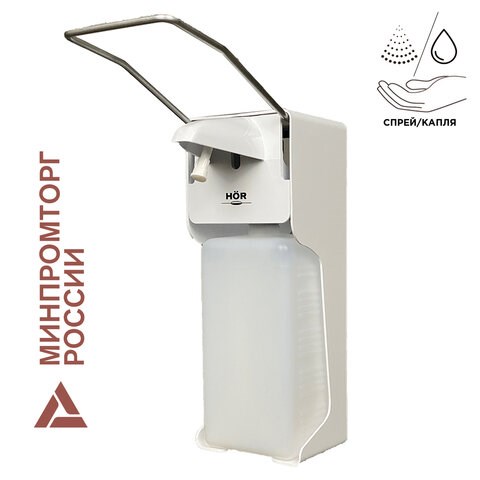 Дозатор локтевой для жидкого мыла и антисептика НАЛИВНОЙ, 1 л, с еврофлаконом, HOR, D004A