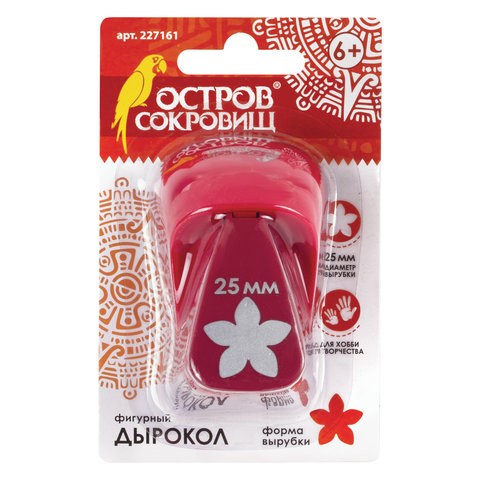 Дырокол фигурный "Цветок", диаметр вырезной фигуры 25 мм, ОСТРОВ СОКРОВИЩ, 227161