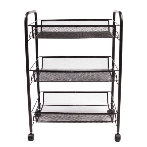 Этажерка (тележка) BRABIX офисно-бытовая 3 яруса, на колесах, металл, черная, 43,5х26х62,5 см, 603751