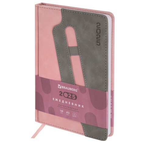 Ежедневник датированный 2025, А5, 138x213 мм, BRAUBERG "Assistant", под кожу, держатель для ручки, розовый, 115889