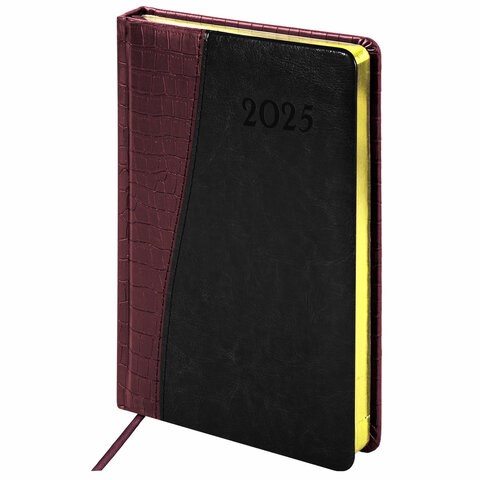Ежедневник датированный 2025, А5, 138x213 мм, BRAUBERG "Cayman", под кожу, бордовый/черный, 115771