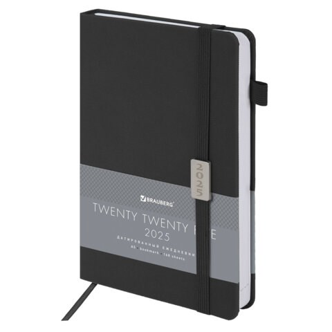 Ежедневник датированный 2025, А5, 138x213 мм, BRAUBERG "Control", под кожу, держатель для ручки, черный, 115849