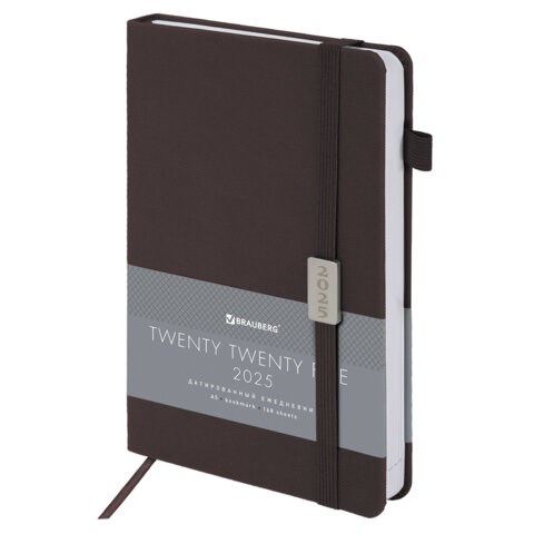 Ежедневник датированный 2025, А5, 138x213 мм, BRAUBERG "Control", под кожу, держатель для ручки, коричневый, 115846