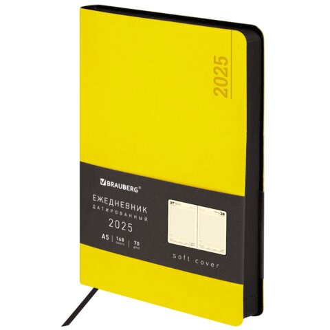 Ежедневник датированный 2025, А5, 138x213 мм, BRAUBERG "Metropolis Mix", под кожу гибкий, желтый, 115859