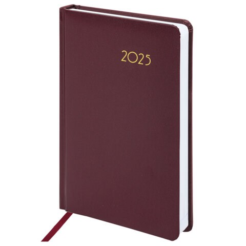 Ежедневник датированный 2025 А5 138x213 мм BRAUBERG "Select", балакрон, бордовый, 115810