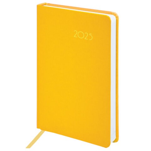 Ежедневник датированный 2025 А5 138x213 мм BRAUBERG "Select", балакрон, желтый, 115812