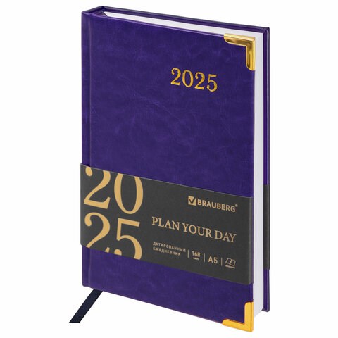 Ежедневник датированный 2025 А5 138x213 мм BRAUBERG "Senator", под кожу, фиолетовый, 115818