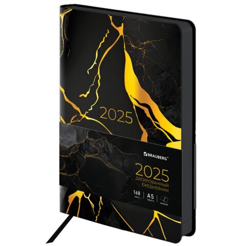 Ежедневник датированный 2025 А5 138x213 мм BRAUBERG "Vista", под кожу гибкий, "Мрамор", 115863