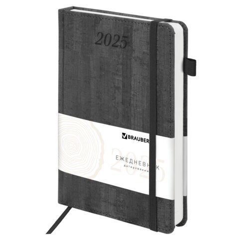 Ежедневник датированный 2025, А5, 138x213 мм, BRAUBERG "Wood", под кожу, держатель для ручки, резинка-фиксатор, серый, 115832