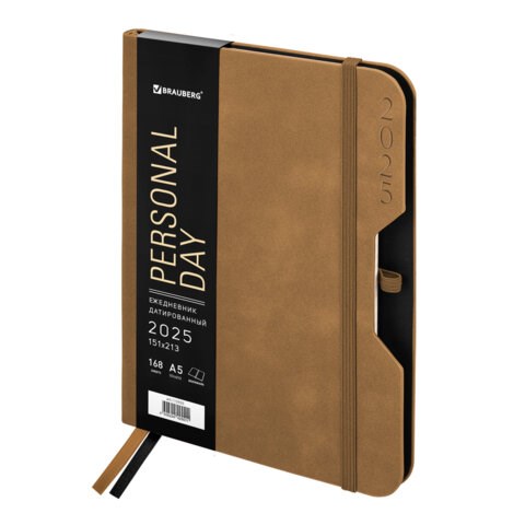 Ежедневник датированный 2025, А5, 151х213 мм, BRAUBERG "Note", под кожу, держатель для ручки, резинка-фиксатор, бежевый, 115935