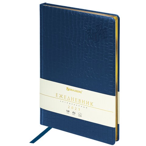 Ежедневник датированный 2025, БОЛЬШОЙ ФОРМАТ, 210х297 мм, А4, BRAUBERG "Comodo", под кожу, синий, 115735