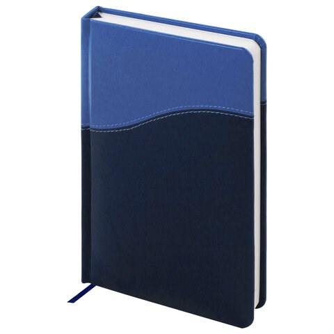 Ежедневник недатированный А5 138х213 мм BRAUBERG "Bond" под кожу, 160 л., темно-синий/синий, 126220