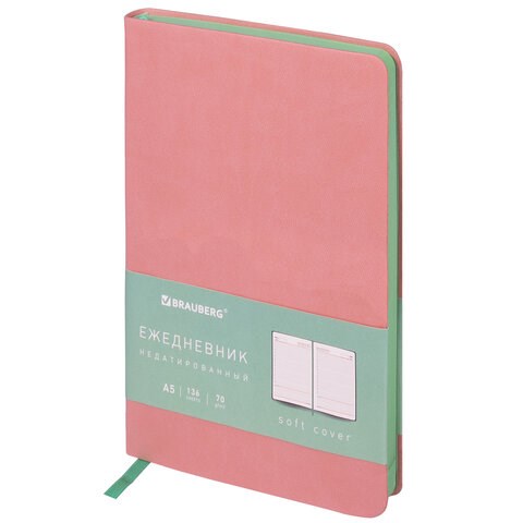 Ежедневник недатированный А5 138х213 мм BRAUBERG "Metropolis Mix", под кожу, 136 л., розовый, 113295
