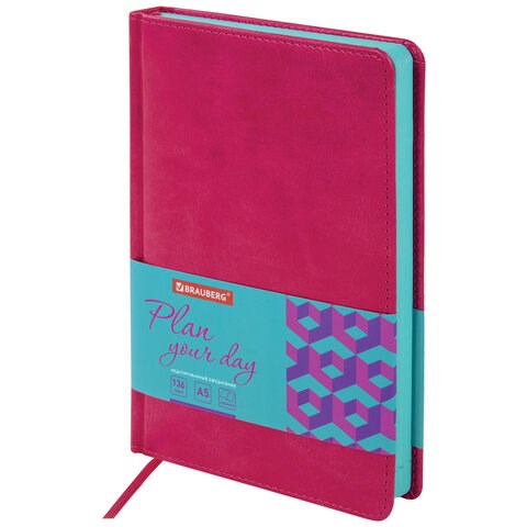 Ежедневник недатированный А5 138х213 мм BRAUBERG "Rainbow" под кожу, 136 л., розовый, 111665