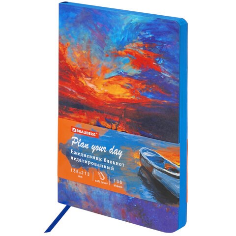 Ежедневник недатированный А5 (138х213 мм), BRAUBERG VISTA, под кожу, гибкий, 136 л., "Sunset at sea", 112041