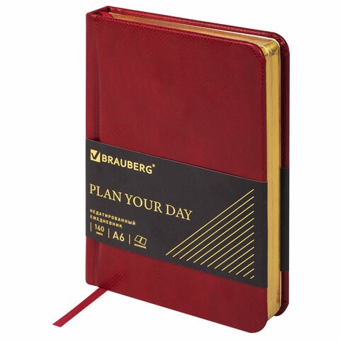Ежедневник недатированный МАЛЫЙ ФОРМАТ 100x150 мм, А6, BRAUBERG "Iguana", под кожу, 160 л., красный, 114468