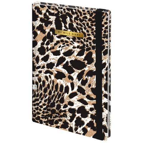 Ежедневник недатированный с резинкой А5 145х203 мм, BRAUBERG, твердый, фольга, 128 л., "Leopard", 116291
