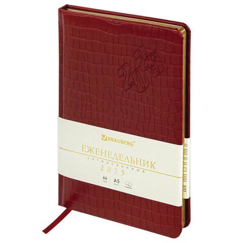 Еженедельник датированный 2025, А5, 145х215 мм, BRAUBERG "Comodo", под кожу, красный, 115958