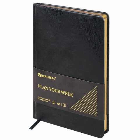 Еженедельник недатированный А5, 145х215 мм, BRAUBERG "Iguana", под кожу, 64 л., черный, 114478