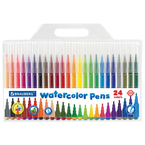 Набор фломастеров BRAUBERG "PREMIUM" с насыщенными, яркими цветами в количестве 24 штук. Чернила на водной основе практически не имеют запаха, не токсичны и легко смываются с большинства материалов и тканей.