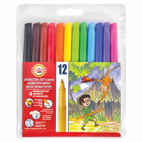 Фломастеры KOH-I-NOOR, 12 цветов, смываемые, трехгранные, пластиковая упаковка, европодвес, 771002AB04TERU