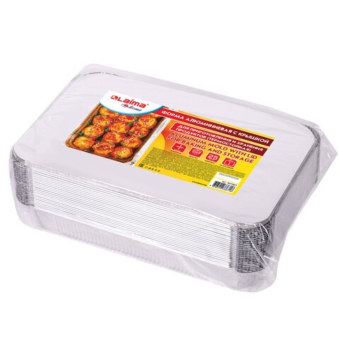Форма алюминиевая с крышкой для выпечки и хранения, 2200 мл, КОМПЛЕКТ 25 шт., 313х213 мм, LAIMA, 607801
