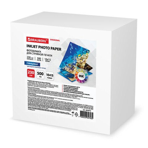 Фотобумага глянцевая, 10х15 см, 230 г/м2, односторонняя, 500 листов, BRAUBERG ORIGINAL, 363973