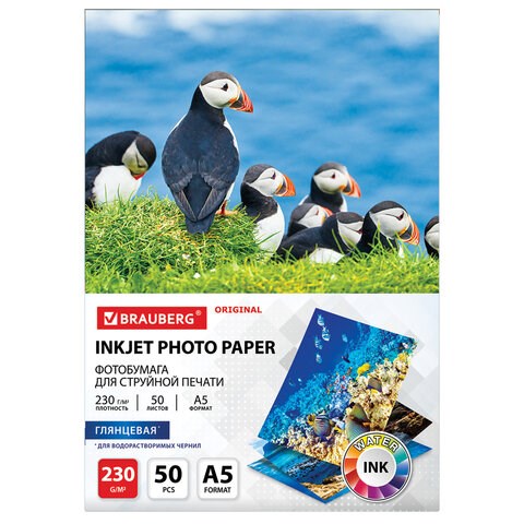 Фотобумага глянцевая, А5, 230 г/м2, односторонняя, 50 листов, BRAUBERG ORIGINAL, 363977