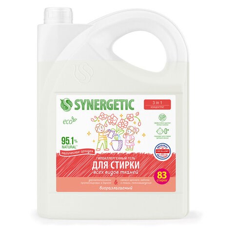 SYNERGETIC "Магическая орхидея" - это средство для ручной и машинной стирки изделий из различных видов тканей. Не содержит хлора. Входящие в состав компоненты сохраняют характеристики и качество тканей.