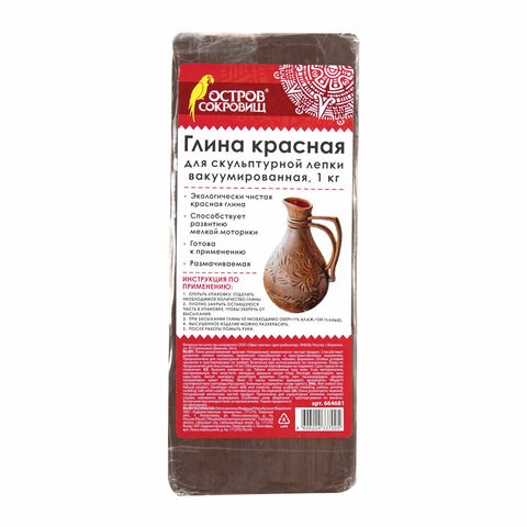 Экологически чистая красная глина ОСТРОВ СОКРОВИЩ идеально подойдет для скульптурной лепки, гончарного дела, набивки, формовки. Способствует развитию мелкой моторики, творческих способностей и пространственного мышления.