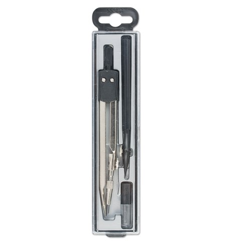 Готовальня предназначена для учеников начальных и средних классов. В комплект готовальни входят 4 предмета: циркуль стальной никелированный, пенал с запасным грифелем, рейсфедер, пластиковый пенал.