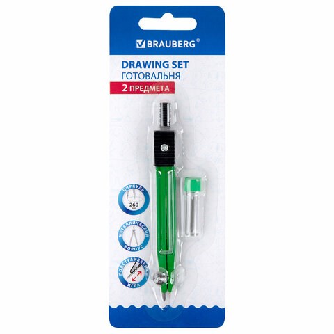 Металлическая готовальня BRAUBERG "Klasse" предназначена для выполнения чертежных работ. Для учеников младших и средних классов.