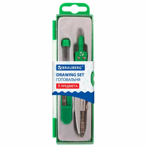 Готовальня BRAUBERG "Klasse", 3 предмета: циркуль 125 мм, точилка, грифель, пенал с подвесом, 210660