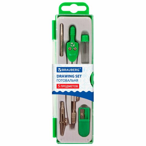 Металлическая готовальня BRAUBERG "Klasse" предназначена для выполнения чертежных работ. Для учеников младших и средних классов.