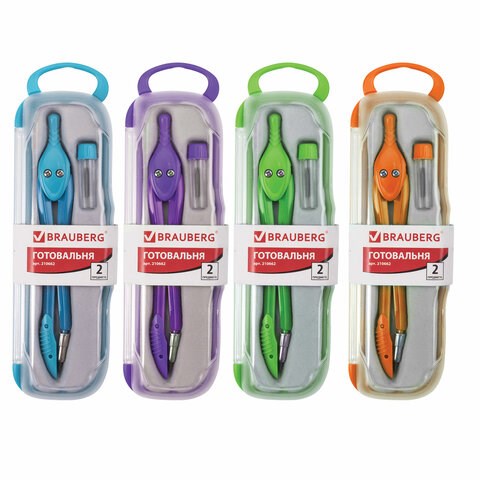 Готовальня BRAUBERG "Modern", 2 предмета: циркуль 135 мм, грифель, пенал с подвесом, 210662