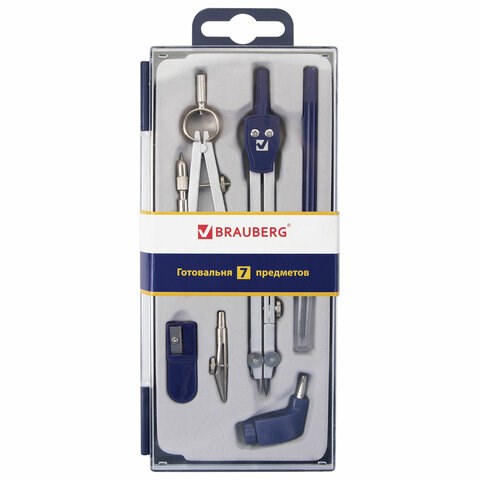 Готовальня BRAUBERG "Student Oxford", 7 предметов: наполнение-1, пенал с подвесом, 210347