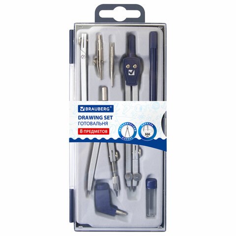 Металлическая готовальня BRAUBERG "Student Oxford" предназначена для выполнения чертежных работ. Для учеников старших классов и студентов.