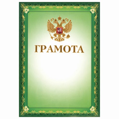 Грамота А4, мелованный картон, конгрев, тиснение фольгой, зеленая, BRAUBERG, 123061