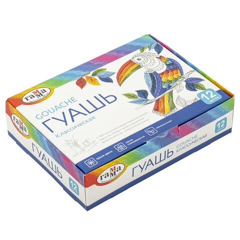 Гуашь ГАММА "Классическая", 12 цветов по 20 мл, картонная упаковка, 22103012