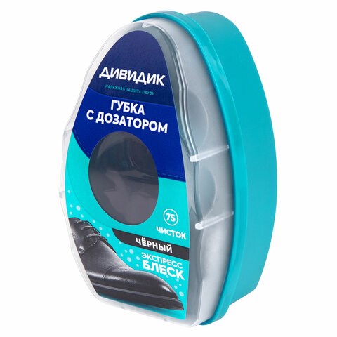 Губка для обуви из гладкой кожи, ЧЕРНАЯ, с дозатором, ДИВИДИК, 4650056490360