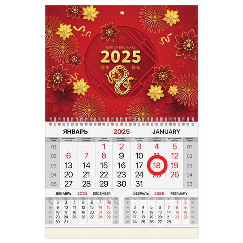Календарь квартальный на 2025 г., 1 блок, 1 гребень, магнитный курсор, мелованная бумага, BRAUBERG, "Восток", 116089