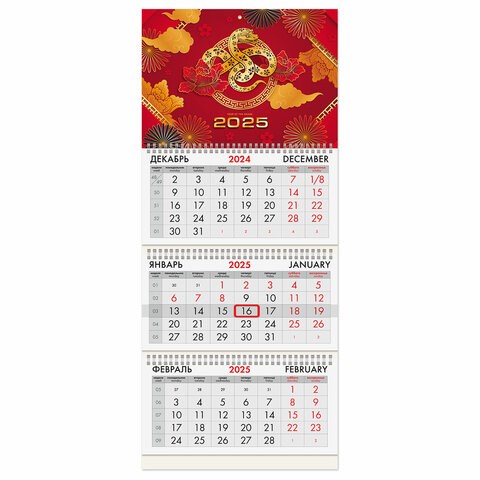 Календарь квартальный на 2025 г., 3 блока, 3 гребня, с бегунком, офсет, BRAUBERG, "Символ года восток", 116094