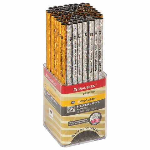 Карандаш чернографитный BRAUBERG "PREMIUM TURKEY", 1 шт., "Hologram", НВ, ассорти, дисплей, 181571
