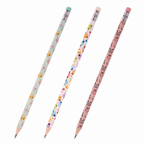 Карандаш чернографитный ЮНЛАНДИЯ "СОВУШКА", 1 шт., HB, с ластиком, корпус ассорти, 181772