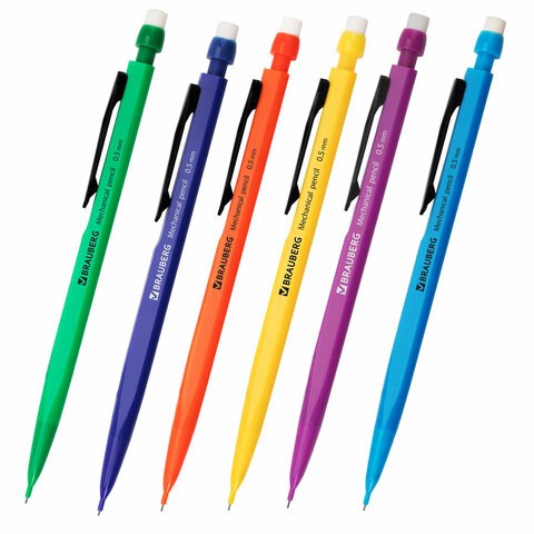 Карандаш механический 0,5 мм, BRAUBERG "Classic", ластик, корпус ассорти, 180398