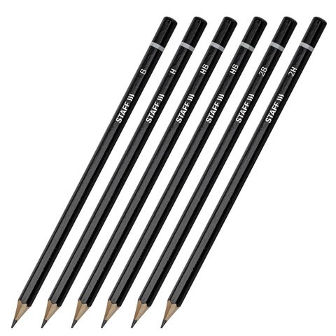 Карандаши чернографитные STAFF "College" BLP-254, НАБОР 6 шт., 2H-2B, черный корпус, 181254