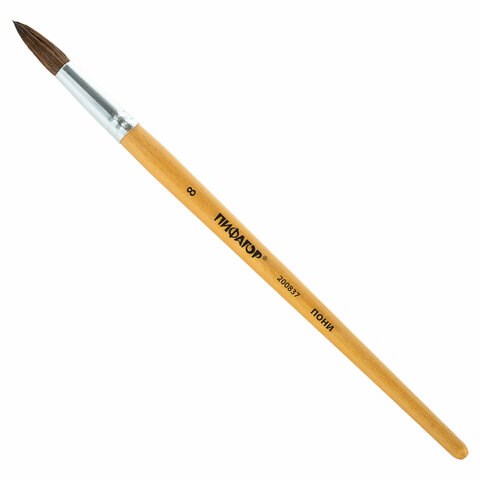 Кисть ПИФАГОР, ПОНИ, круглая, № 8, деревянная лакированная ручка, колпачок, пакет с подвесом, 200837